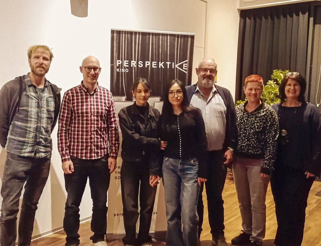 Die Gruppe M.R.T. auf Gitarre, Bass und Schlagzeug eröffnen den Abend mit Filmmusik. Kompositionen und Melodien aus Klassikern, Stimmungen aus Hitchcock, Lynch oder Jarmusch. Hochgradig stilvoll und bescheiden. Ich bemerke eine kleine Traube jugendlicher Migrant:innen am linken Ende der Stuhlreihe, die jede Nummer im Hochformat mitfilmen. Ich grüble über ihren Bezug zur Veranstaltung, ihr Interesse an der Musik? Die Antwort erübrigt sich, als das Screening nach kurzer Einführung beginnt. Die Gruppe ist verantwortlich für die Technik und hilft im Jugendzentrum. Und wie ich später erfahre, verfolgt der Verein seit jeher einen menschenverbindenden Ansatz im Kulturschaffen, wobei das Medium Film als Vehikel und Bindeglied fungiert. Dabei entstehen Räume und Chancen im ehrenamtlichen Umfeld. Eine Symbiose aus Kultur und Integration, die mit leichtfüßiger Selbstverständlichkeit tatsächlich andockt.